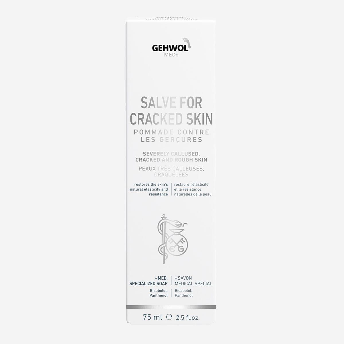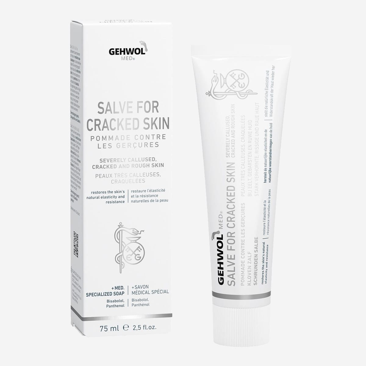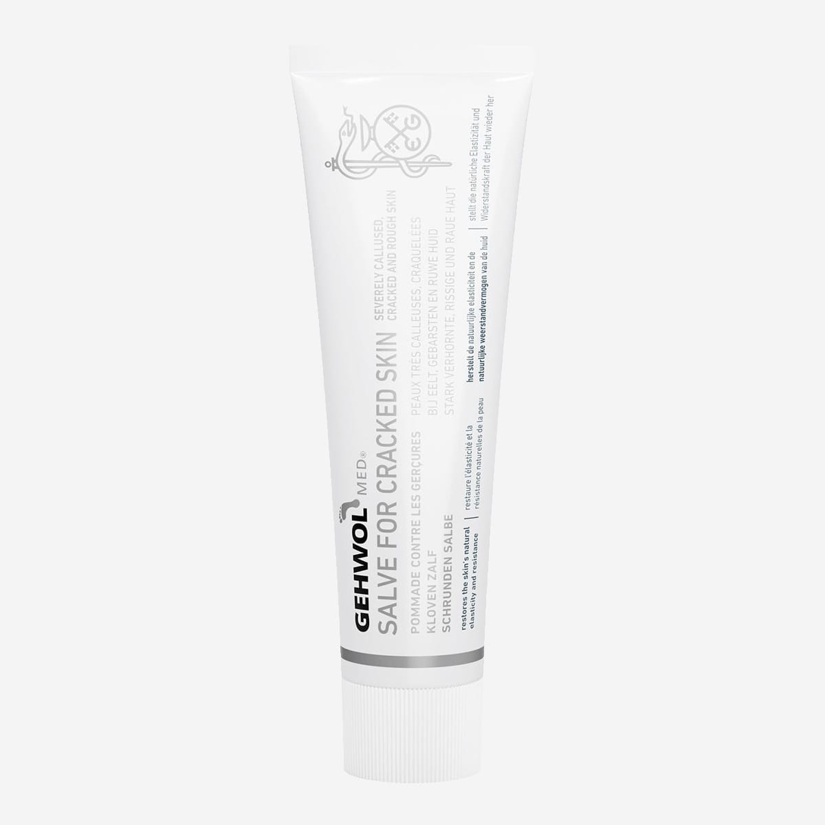 Om du har torr eller sprucken hud, exempelvis hälsprickor, är det Gehwol med® Salva mot sprucken hud du ska använda. Den här fotkrämen är en fet variant som samtidigt vårdar dina fötter och ger fötterna bra motståndskraft. Naturliga eteriska oljor och inflamamtionshämmande substanser ger den goda effekten.